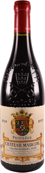 Châteauneuf du Pape Privilege z Château Maucoil sa v pohári javí v tmavej rubínovo červenej farbe a s veľmi aromatickým ovocným buketom. Ten očarí vôňou černíc a sliviek, ktorú podčiarkujú korenisté tóny.